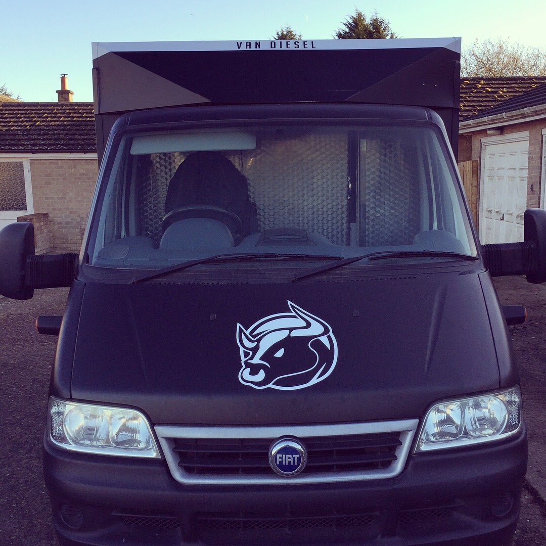 Here he is, welcome to Van Diesel and his brand new clothes. Freshly wrapped and looking pretty smart even if we do say so ourselves. One of the last things we have been getting done ready for trading ASAP now so really exciting times. The lovely matt black and white design brought to life by digitaldeadline.co.uk in Melton who did a brilliant job and the design by Weio.co.uk, so many thanks to them, we love it! We hope you love it too!